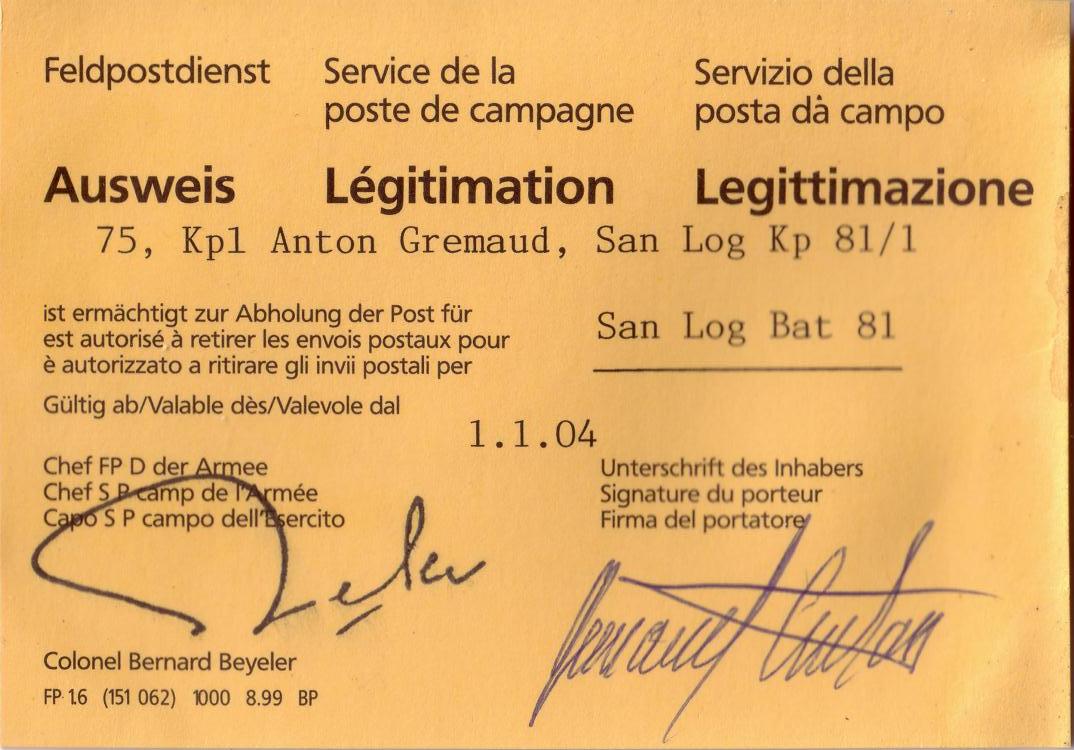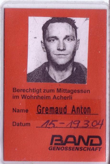 Ausweis Band Genossenschaft; berechtigt im Wohnheim zu essen